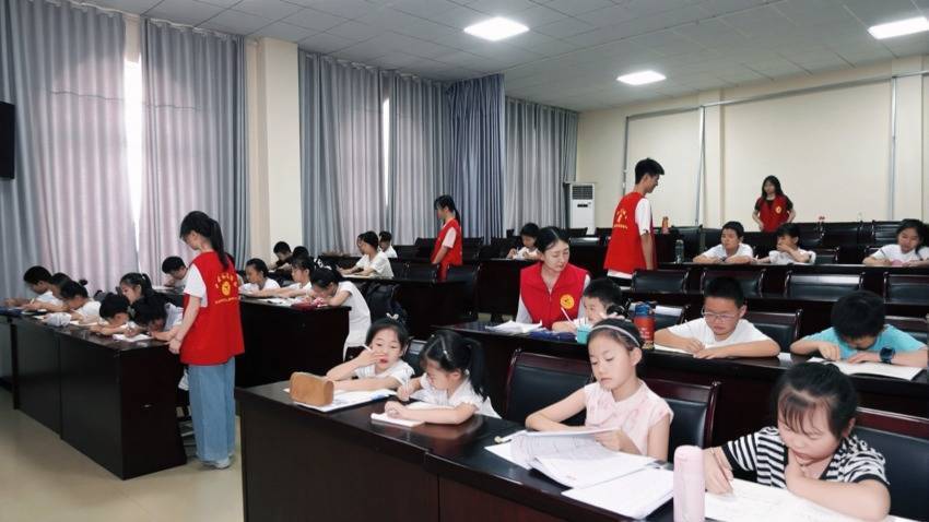走进爱心暑托班教室,志愿者老师耐心地为小学员进行课业辅导,解答疑难问题。为确保孩子们在安全、有序的环境中学习成长,暑托班配备了经验丰富的班主任、专业的授课教师及认真负责的大学生志愿者团队。