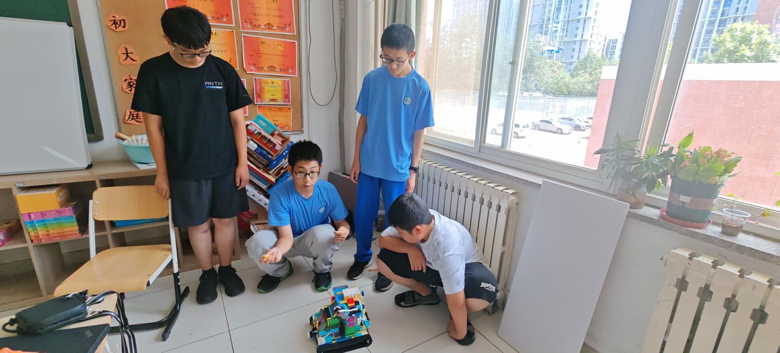 与上述两项比赛不同,机器人创意设计赛具有一定难度,主要考察学生的创意,并以作品展示的形式进行。北京市日坛中学四惠校区八年级5班学生的参赛作品“自动送快递回收垃圾一体机”,其创意灵感来自当前快速便捷的快递服务。据团队成员马茗朔介绍,他们设计的“快递机器人”在送快递的基础上,能自动回收纸箱等垃圾,以此保护环境,解决现实生活中的一些小麻烦。为了完成这项任务,团队4名同学分别参与到编程、搭建等具体工作中,并利用数学学科中的计算与测量和物理学科中的杠杆原理等学科知识,最终完成了该作品。