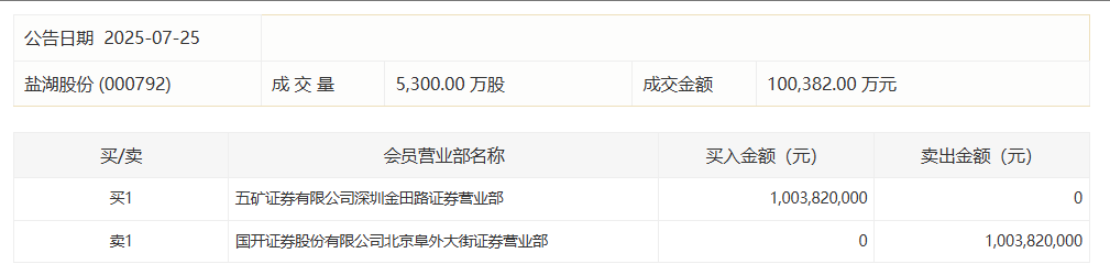 盐湖股份现10.04亿元溢价大宗交易盐湖股份现10.04亿元溢价大宗交易